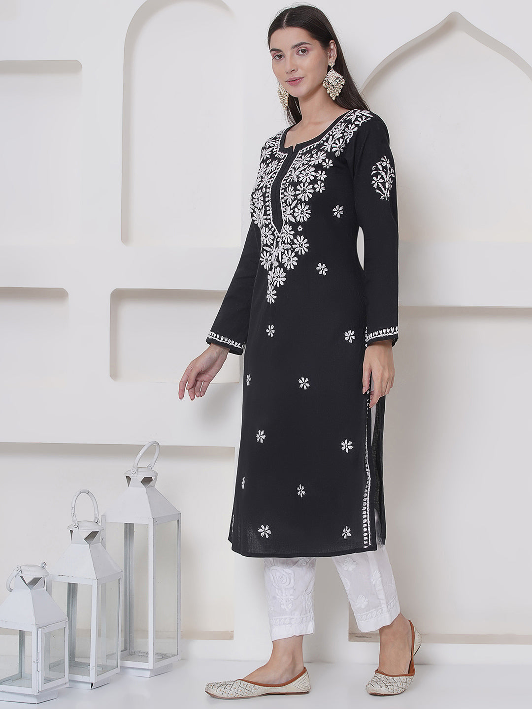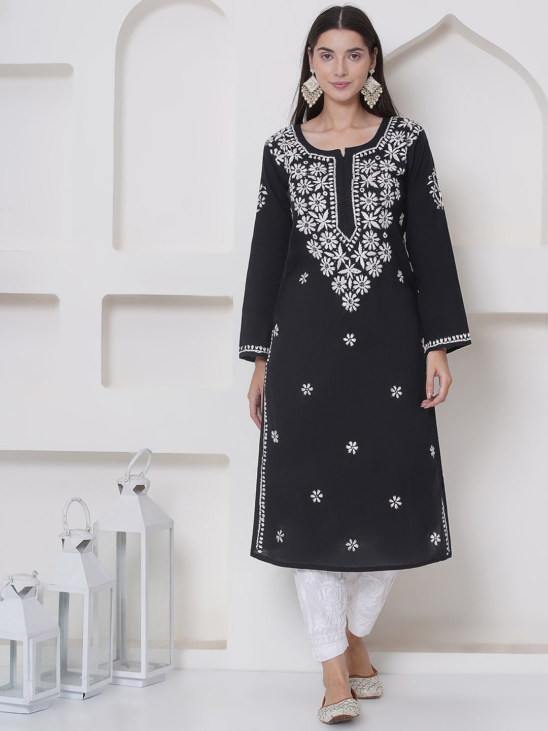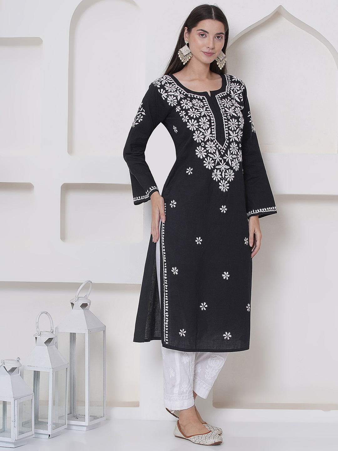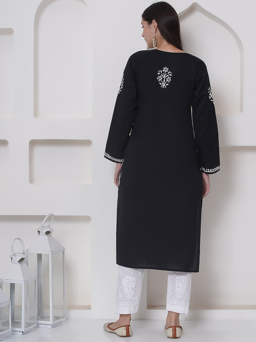 Black Cotton Chikankari Kurti For Women – Saahiba