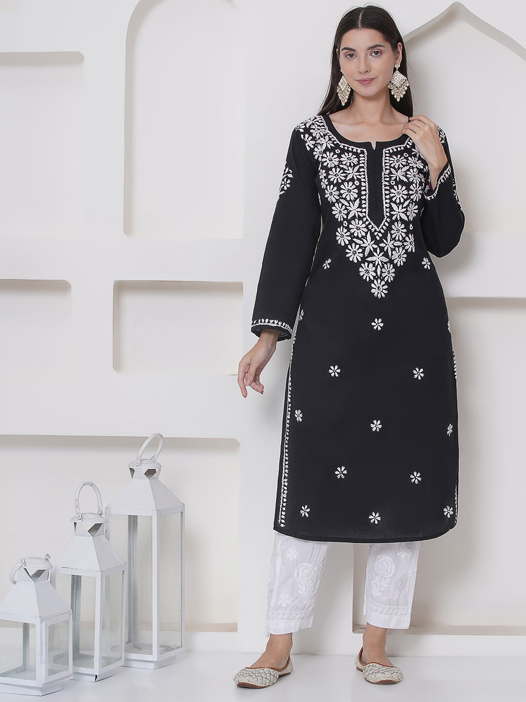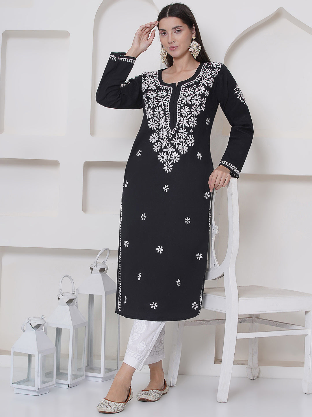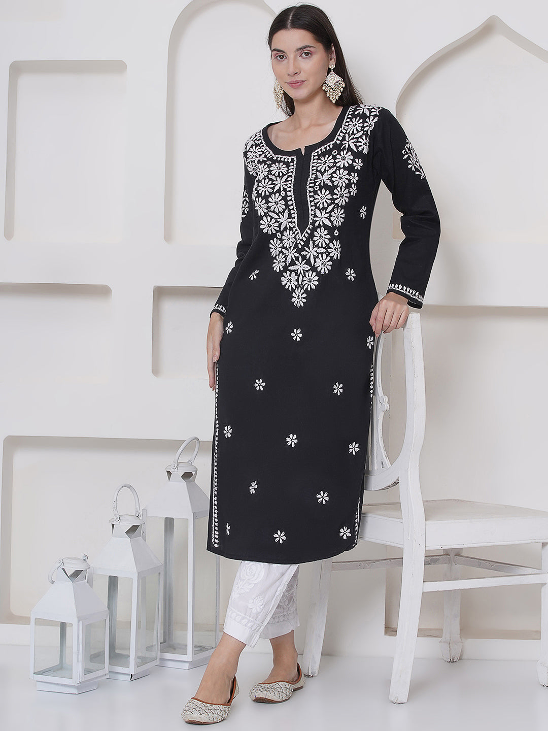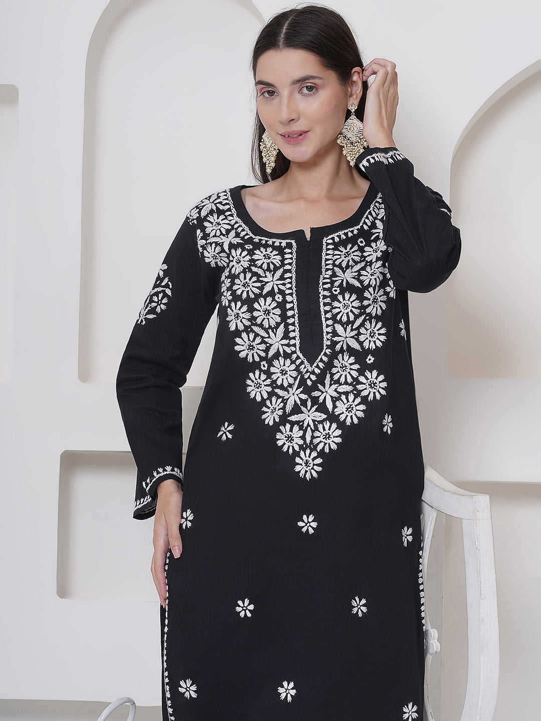 Black Cotton Chikankari Kurti For Women – Saahiba